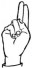 На ћирилици написано САНДРА ГРАБОВЧИЋ састоји се из 15 слова [?]. Исписано ћириличном једноручном азбуком за глувонеме: